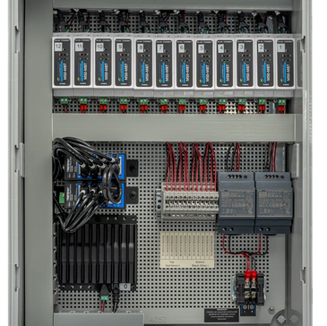 The Smart Panel IGM (SPIGM) is a complete SiteLink replacement housed in a compact ABS enclosure. The panel includes 12 MS0-MBT gateways and a built-in Ethernet switch, allowing direct connection to your existing IGM communications wiring without any rewiring. Each gateway provides native IGM protocol support for legacy Liebert equipment, and can also communicate with Modbus/RTU devices—making it easy to integrate newer Velocity units equipped with a 485 card. For sites with BACnet/MSTP equipment, any gateway can be swapped for an optional BACnet router. On the network side, the SPIGM provides Modbus/TCP, SNMP, and BACnet/IP (direct messaging) output, giving your BAS a single, standardized integration point. A command-line discovery tool is included for technicians to quickly identify connected units through the panel's Ethernet switch. For larger deployments, custom IGM panels without the processor module can be daisy-chained back to a primary SPIGM panel, reducing network drops while maintaining centralized monitoring.
